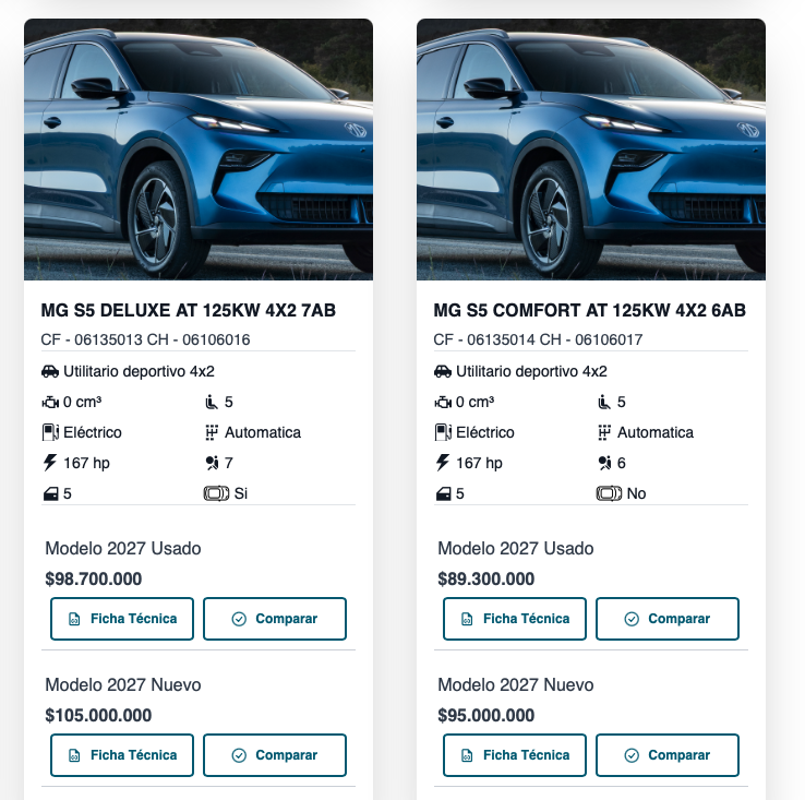 Aprecie los registros de guia valores Fasecolda de los 2 acabados de MG S5 para Colombia.